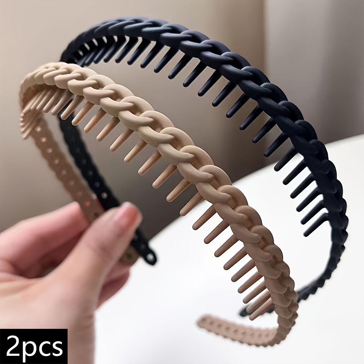 TEMU 1개 또는 2개 미끄럼방지 이빨 헤어밴드 - 여성용 브레이드, 번, 포니테일용 헤어밴드, 베이지/다크 브라운/블랙, 앞머리 고정, 곱슬/ 헤어, 일상 및 특별한 행사용 (미끄럼방지 헤어 클립)