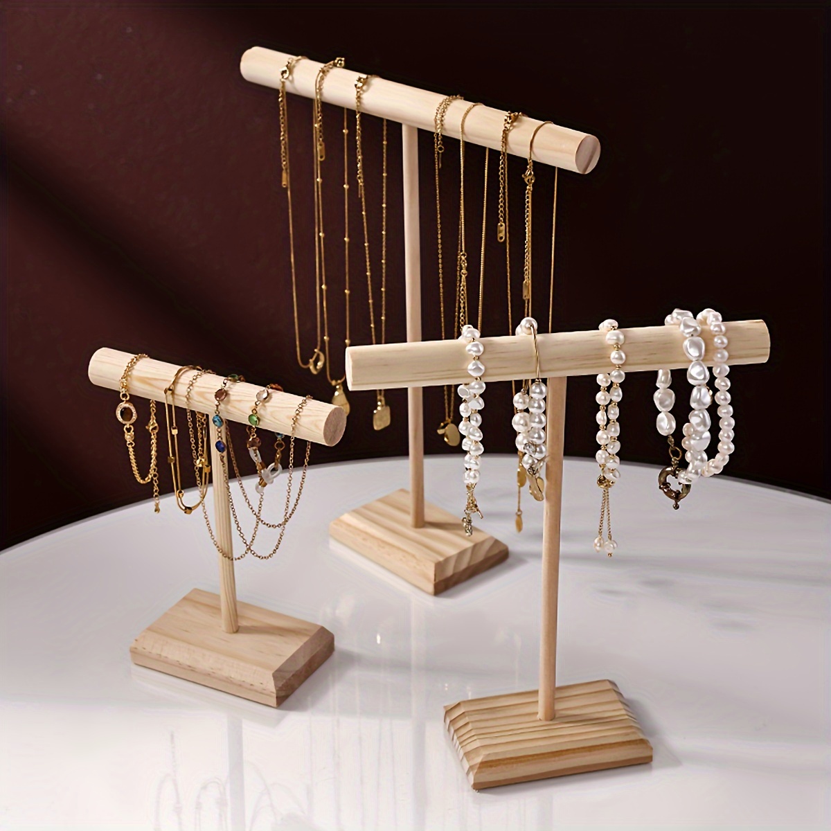 TEMU 3개 나무 T자형 주얼리 진열대 세트, 목걸이, 팔찌, 손목 밴드, 발찌 등을 다양하게 전시할 수 있습니다. 분리 가능하며 키체인 및 연예인 상품 정리함에 적합합니다. 머리끈, 헤어 액세서리 보관에 이상적입니다.