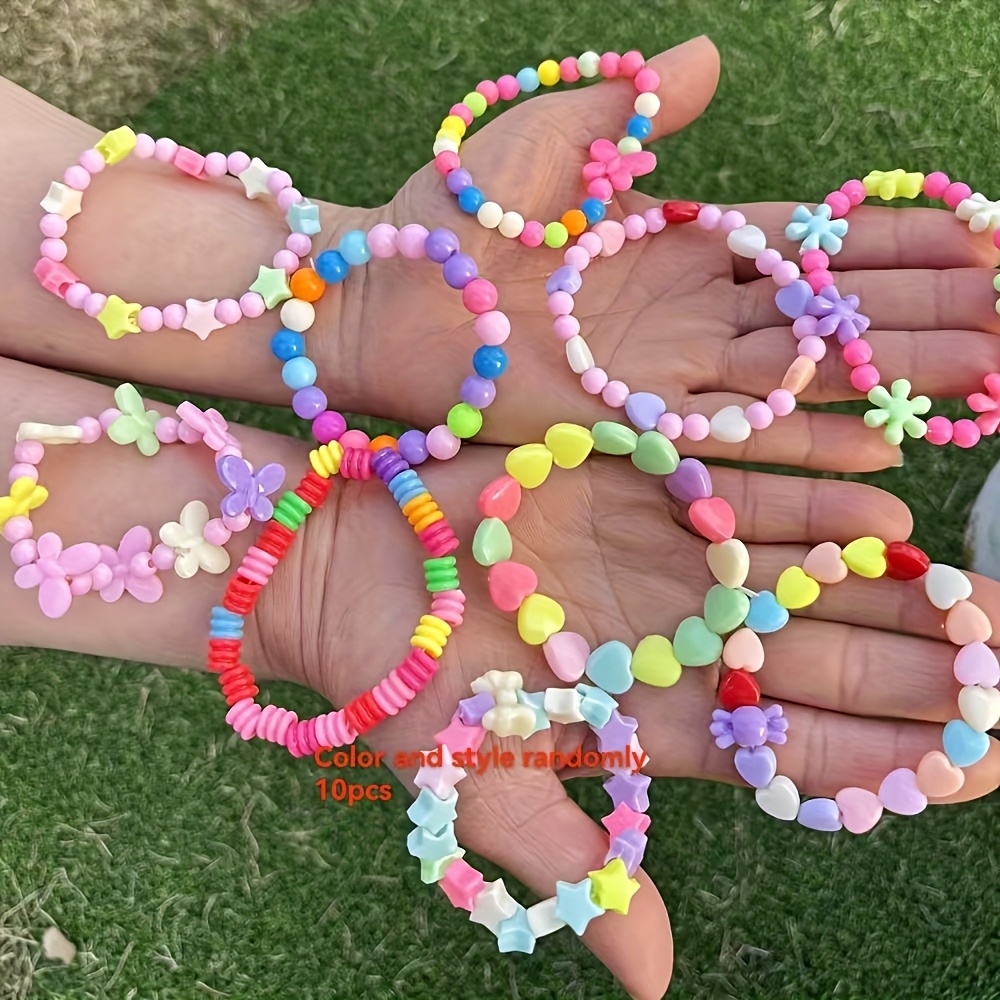 TEMU 아크릴 비즈, 플라스틱 진주, 꽃 디자인으로 제작된 10가지 스타일의 멀티컬러 팔찌