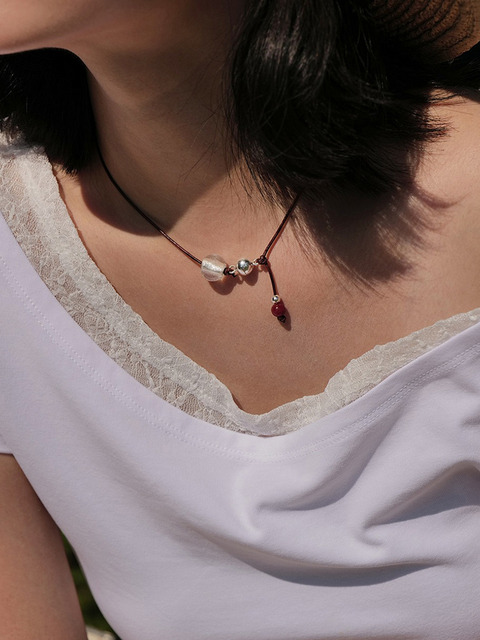 [비스완] 하트 토글 가죽 목걸이 #7578