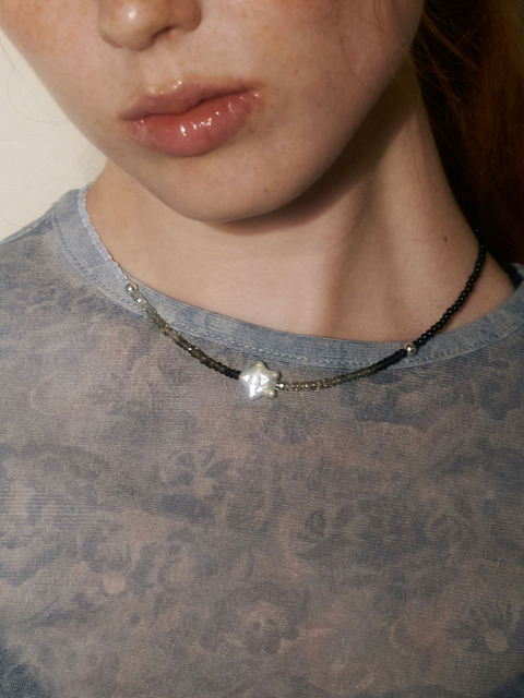 [타키비즈] Black Label 실버 블랙스완펄 롱목걸이