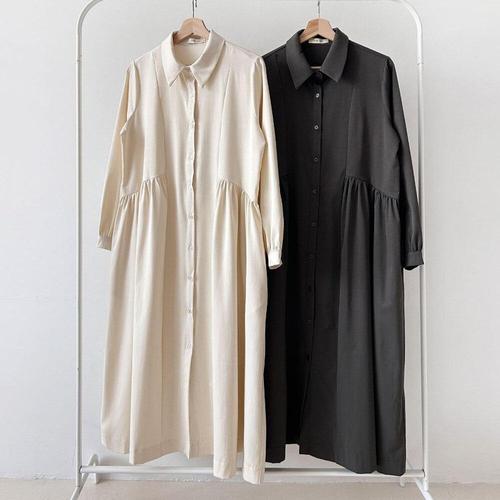[다잇템]여성 단추 단가라 카라넥 소프트 롱드레스