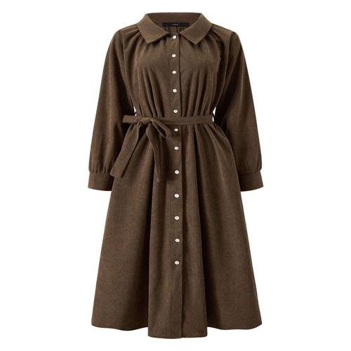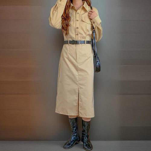 [신상오픈런]여성 포켓 롱 원피스 클래식 카라넥 벨트 셔츠 드레스
