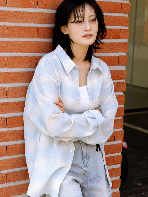[디써티원] 올데이 린넨라이크 체크 셔츠(스카이블루)