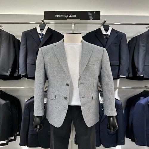 [트루젠]린넨 혼방 스카이블루 체크 남자 기본핏 비지니스 캐주얼 콤비 자켓