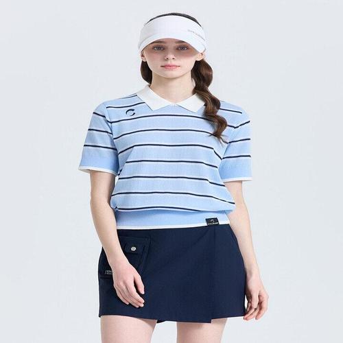 [챌린저]여성 린넨 스트라이프 카라 반팔 니트 스카이블루_CHF2WKT6626SB_IC