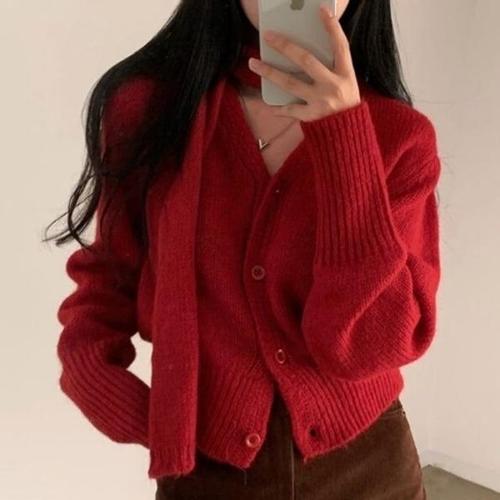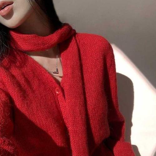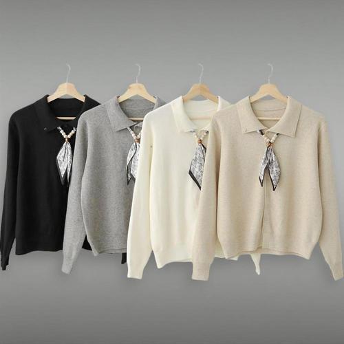 아이엠몽 여성 스카프 포인트 카라 니트 가디건