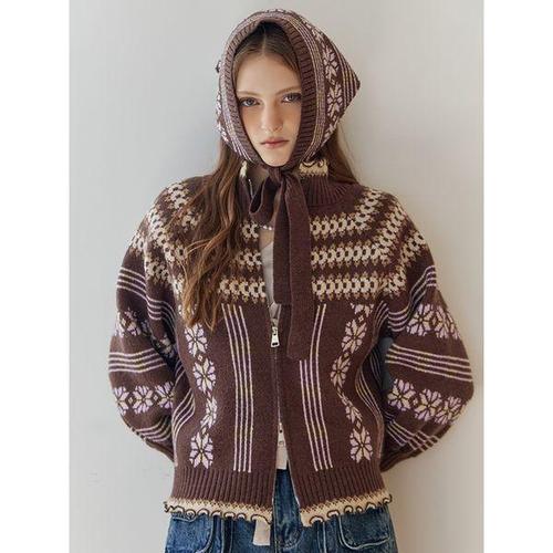 [마쟈]노르딕 패턴 니트 집업 가디건&스카프 세트