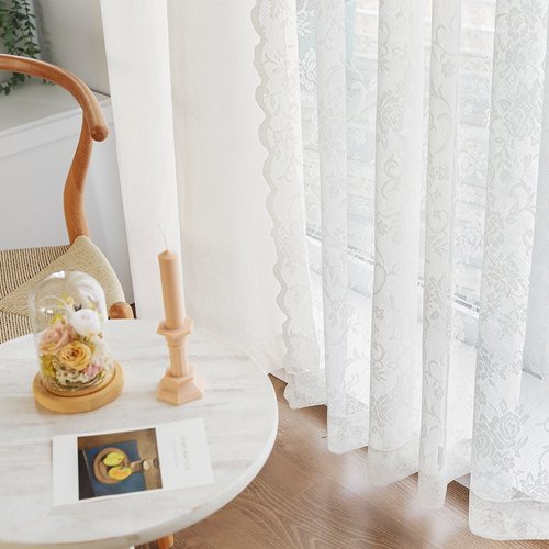 린넨룩쉬어+들꽃 레이스 대형 침실 거실커튼 4장