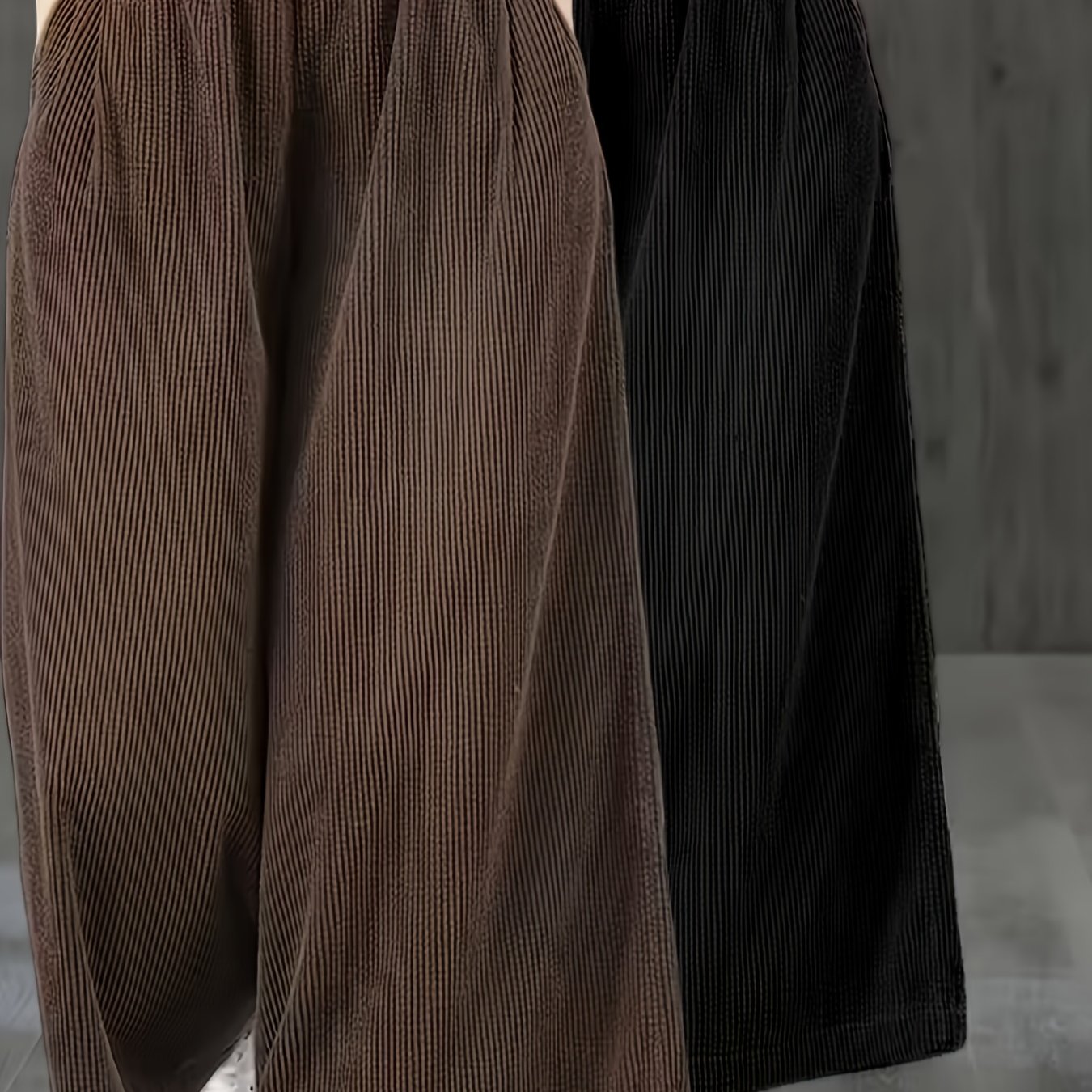 TEMU 2pcs 여성용 와이드 레그 팬츠 - 코듀로이 텍스처 루즈핏 팬츠, 신축성 허리밴드 & 벨트 포함, 사계절 캐주얼 & 포멀 웨어 (블랙/올리브 그린) - 엘레강트 컬렉션 맥시 길이 팬츠, 세탁기 사용 가능