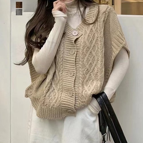 [페이릿] 제민 꽈배기 크롭 옆단추 니트 조끼