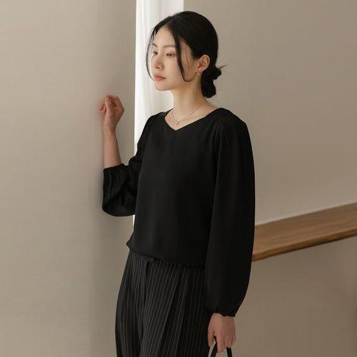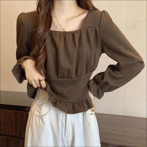 스퀘어넥 셔링 블라우스 여성 긴팔 오피스룩 간절기 3색 WFKXMFR