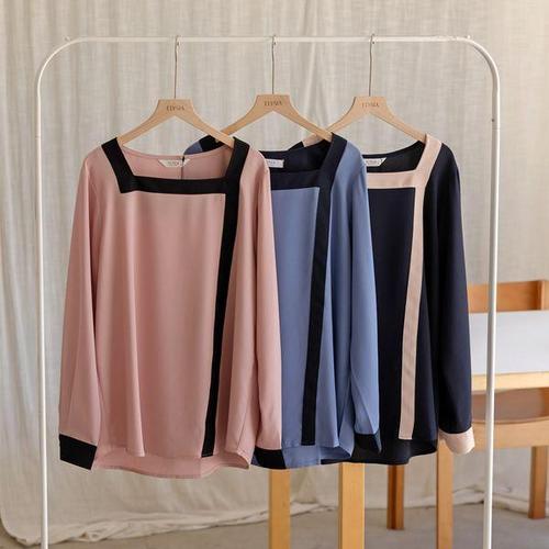 [엘리시아]클래식 스퀘어 배색 블라우스