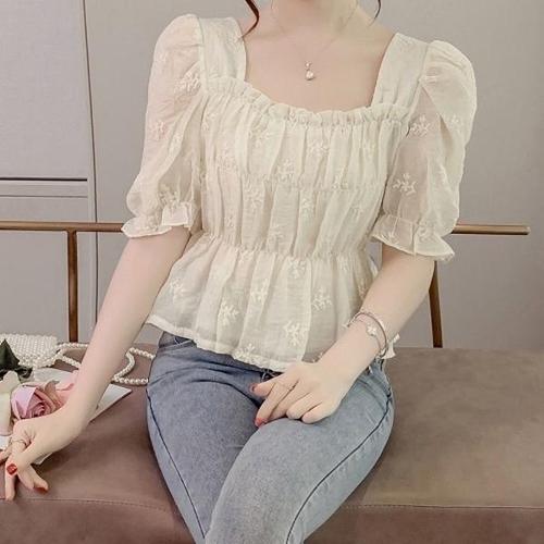 [엄지척]스퀘어넥 자수패턴 여성스러운 플라워 블라우스_19644961_667501