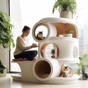 메일켓 고양이 숨숨집 우주선 다기능 스크래쳐 겸용 캣타워 베이지, A타입