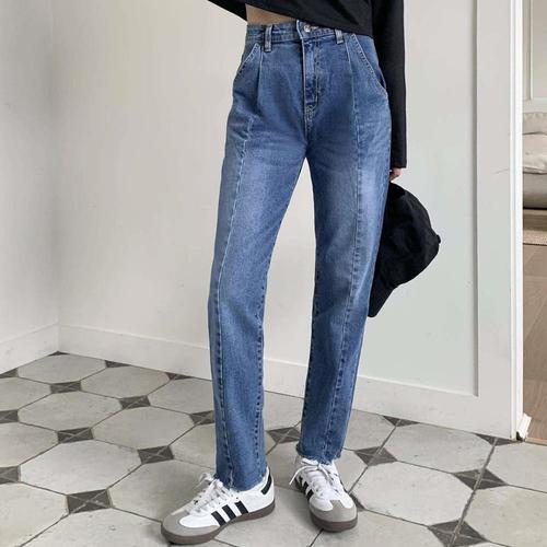 [옷자락]여성용 슬림 핀턱 데님진 진청절개라인 코튼스키니