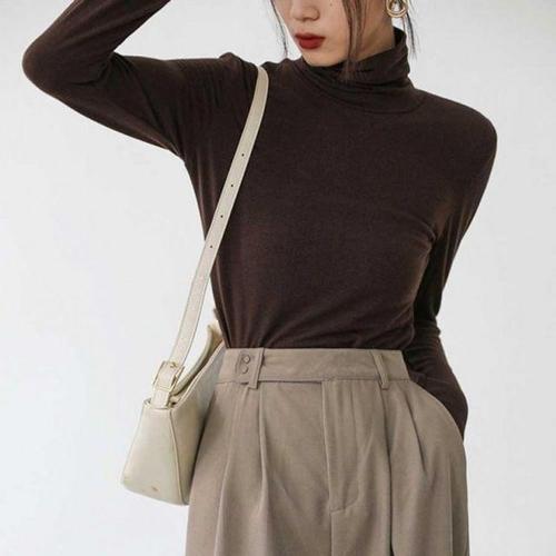 여성 직장인 연출 봄가을용 시즌 속옷 웨어 스키니핏 목폴라티 20대 WFLF2DR