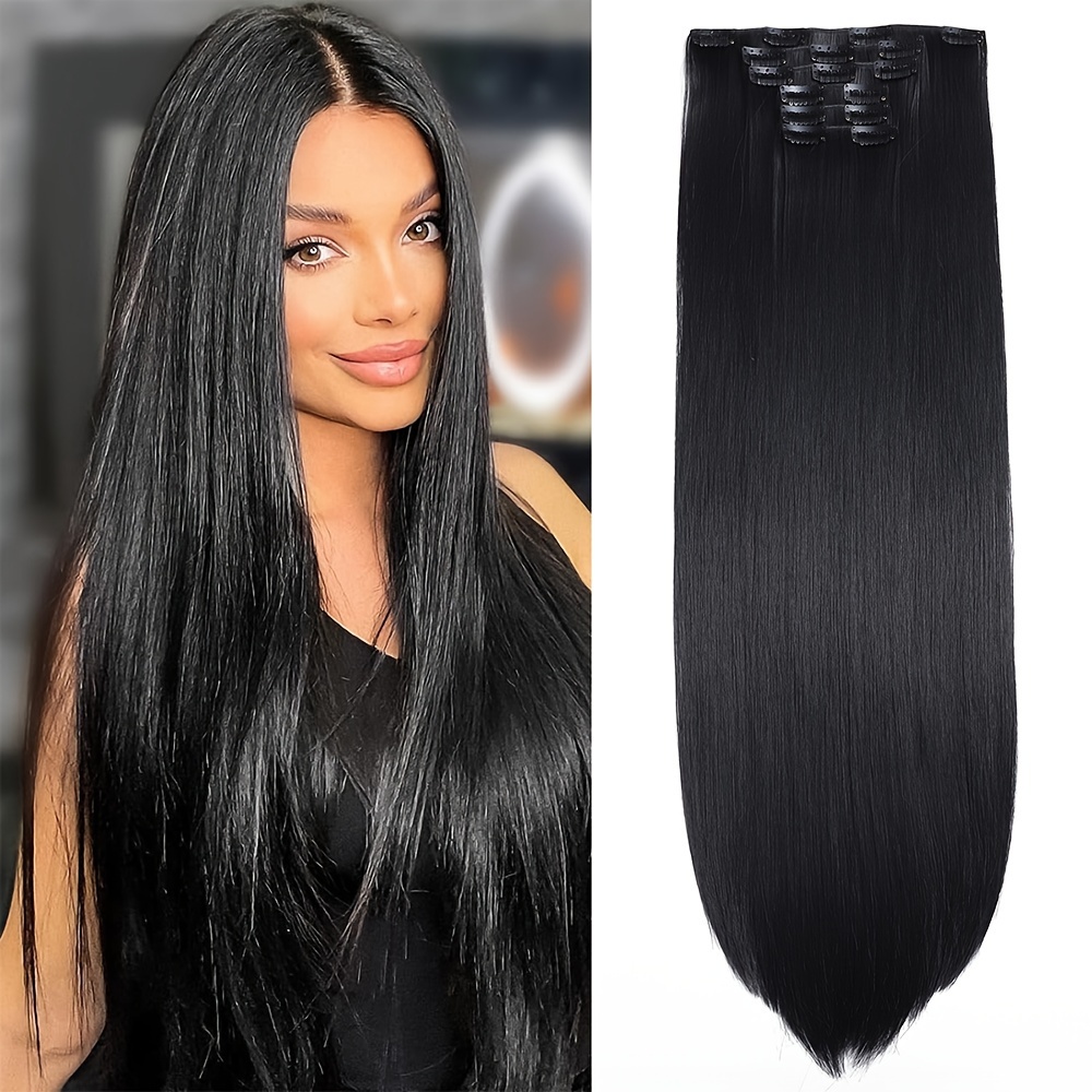 TEMU 여성용 클립인 헤어 익스텐션 6세트, 24인치 합성 섬유, 열에 강함, 머리 전체 커버리지, 미끄럼 방지, 사용하기 쉬움, 오래 지속, 일상 착용 및 코스프레에 이상적