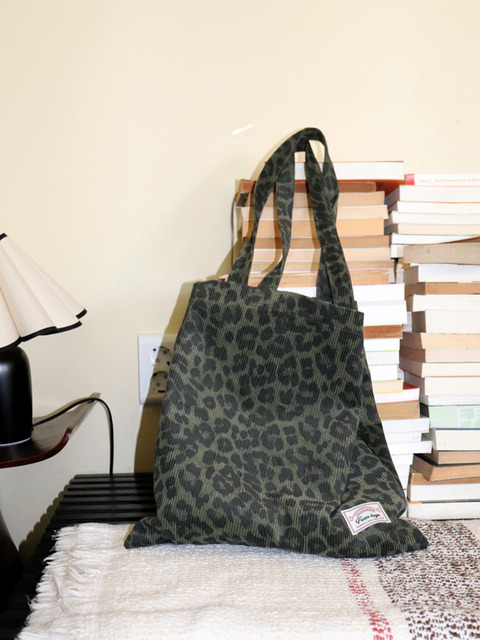 [토제] 레오파드 코듀로이 에코백 (카키)