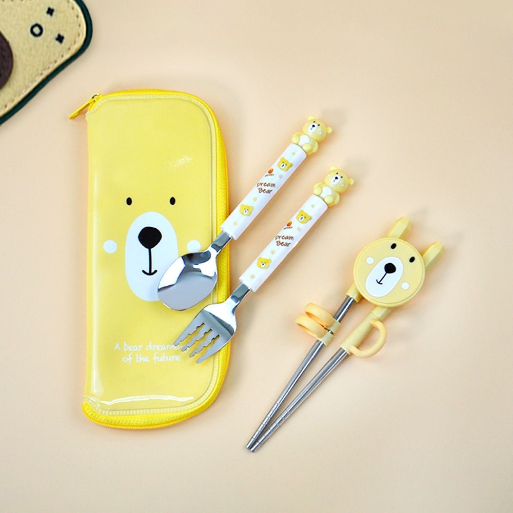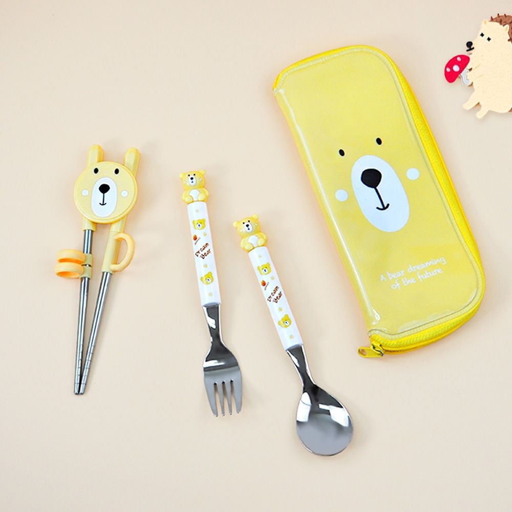 베어 마스코트 유아 스텐 스푼 포크 젓가락 수저케이스 세트 국산 아기 숟가락 연습용 수저