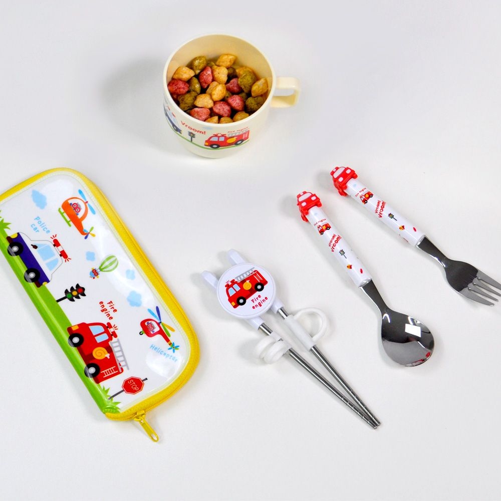 부릉부릉 마스코트 유아 스텐 스푼포크 젓가락 수저케이스 세트 국산 어린이집 숟가락