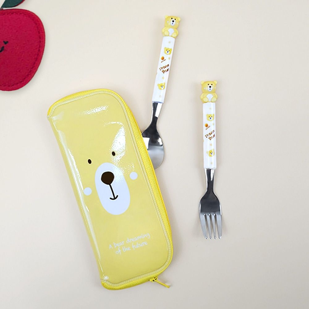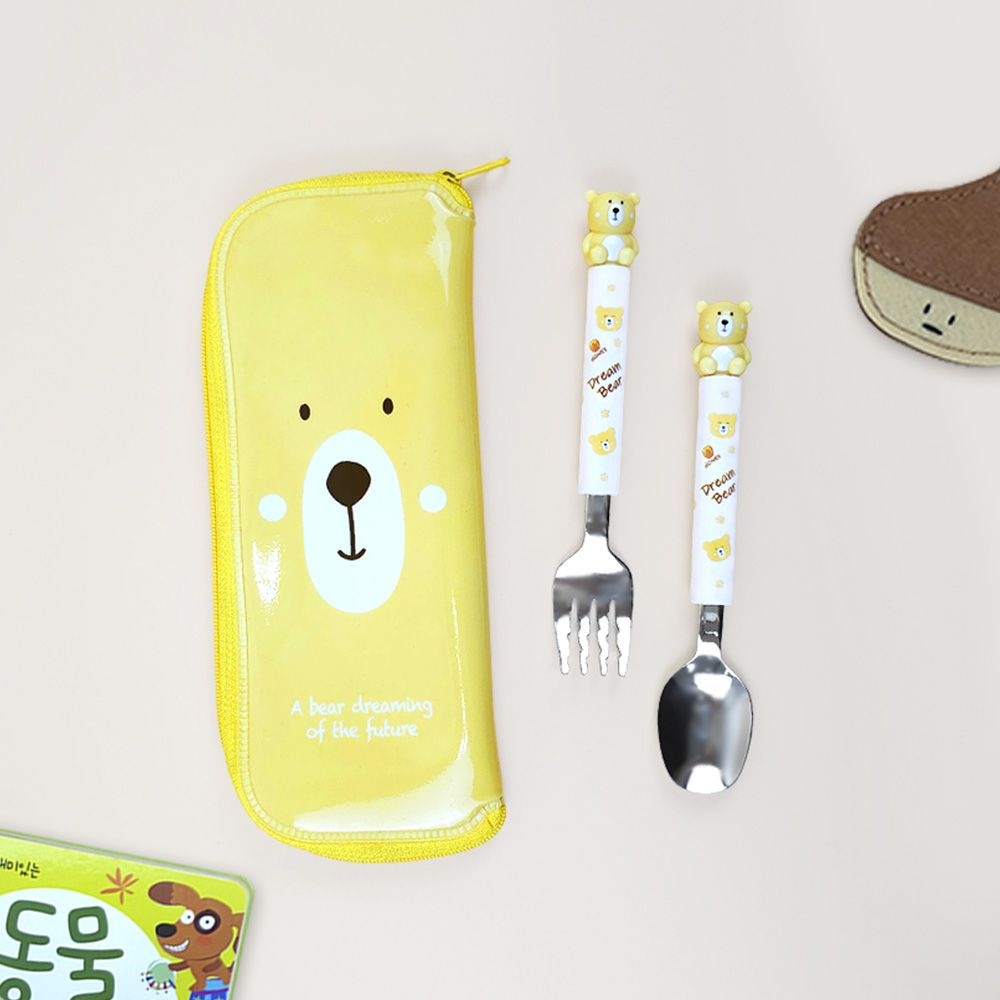 베어 마스코트 스텐304 아동 스푼 포크 수저케이스 세트 국산 어린이집 준비물 유아 숟가락