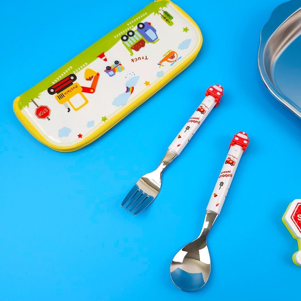 부릉부릉 마스코트 스텐304 아동 스푼 포크 수저케이스 세트 국산 자기주도 유아 숟가락