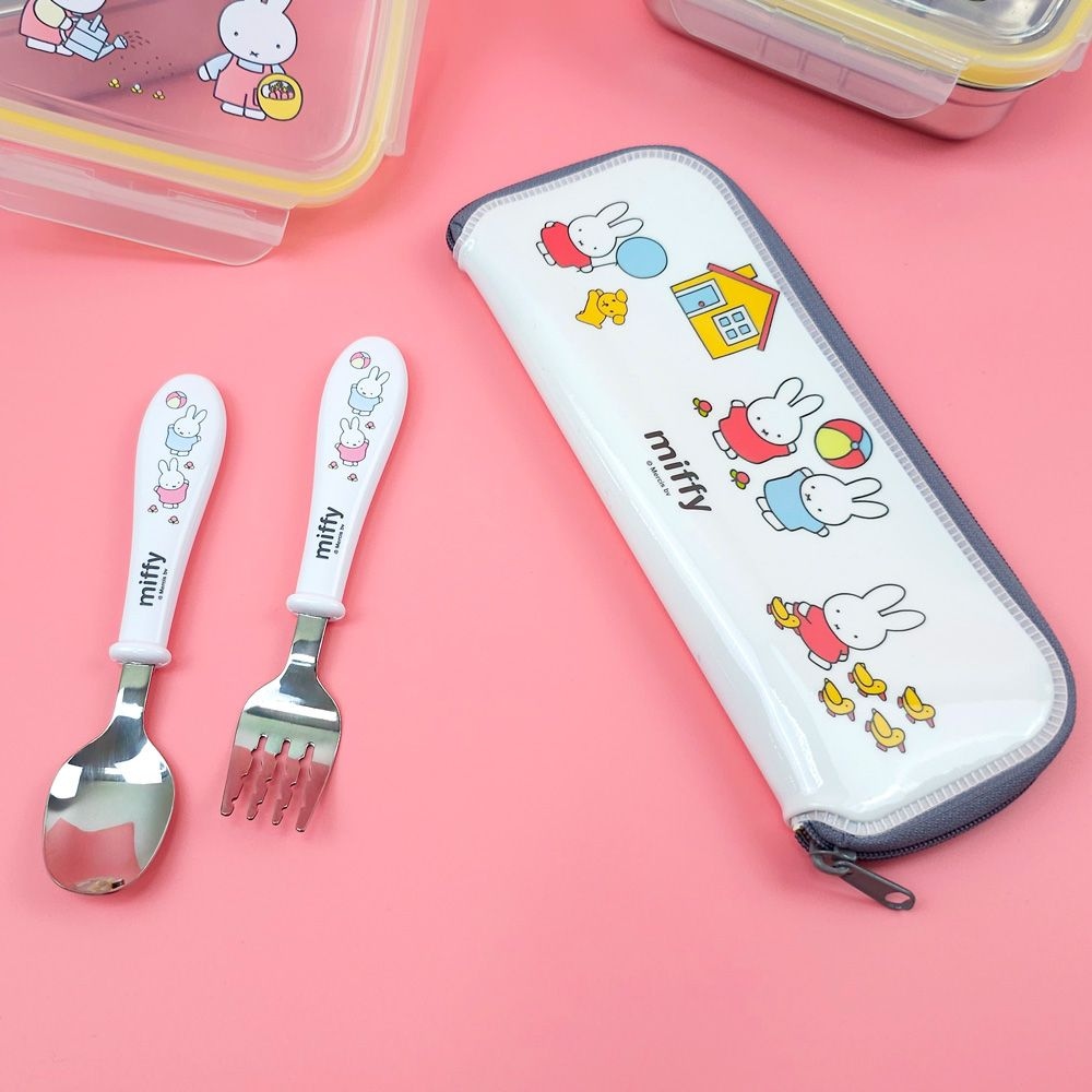 미피 꼬마 스텐 스푼 포크 수저케이스 세트 어린이 수저통 어린이집 아기 이유식 숟가락