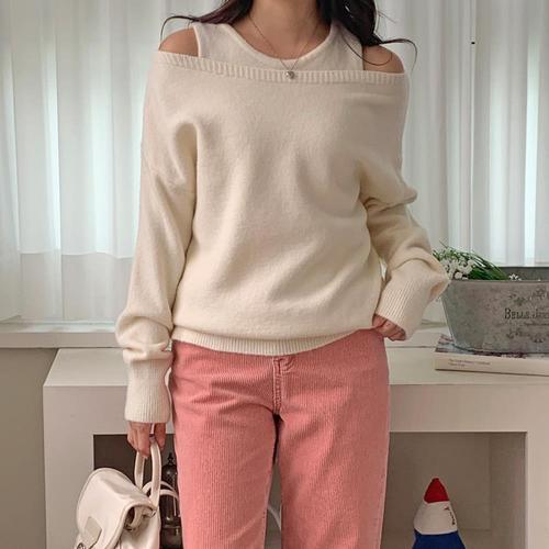 [옷자락]여자 겨울 레이어드 보트넥 니트 나시 투피스 세트