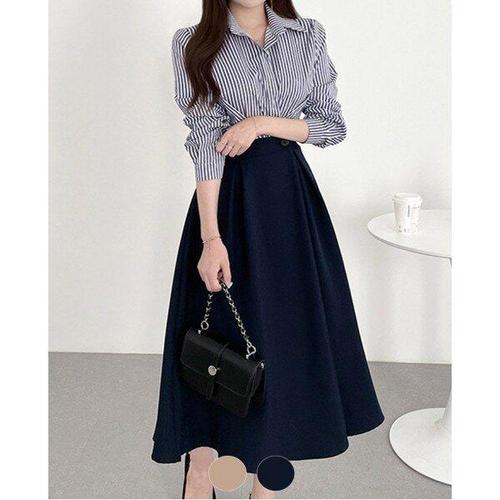 [셀러허브_여성트랜드패션]ONM 여성 랩디자인 H라인 스트라이프 셔츠 원피스