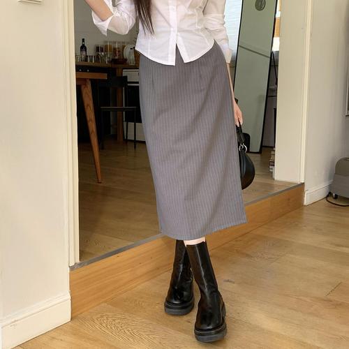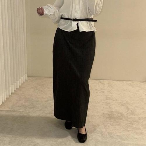 [시크블랙]체파키 핀 스트라이프 H라인 롱 스커트