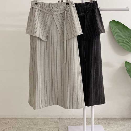 허니제이 / 세트 무배 리베토 스트라이프 벨트 랩치마 트임 롱 스커트(2color)