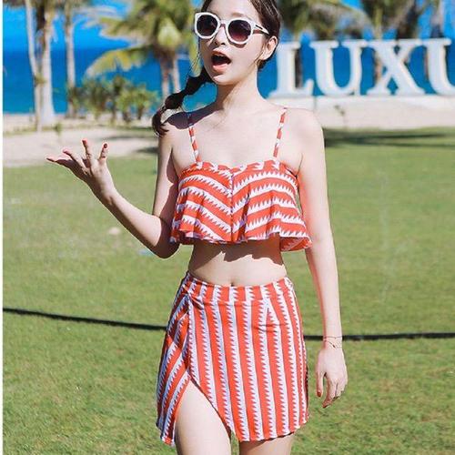[에이치플러스몰]절개 치마 셔링 스트라이프 비키니