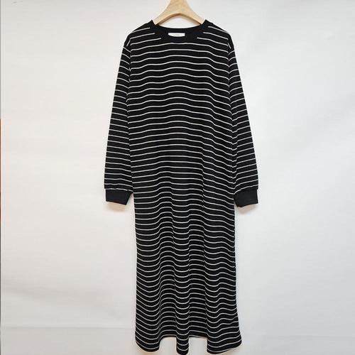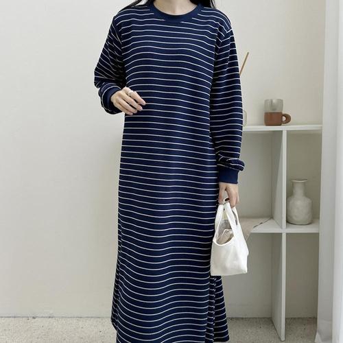 [옷자락]여자 스트라이프니트 허리조절 a라인 플레어 롱원피스