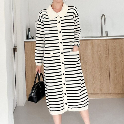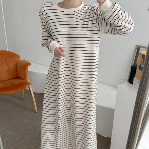 지고다그 여성 봄가을 니트 스트라이프 원피스 롱슬리브 루즈핏 캐주얼 데일리룩 GJX3565