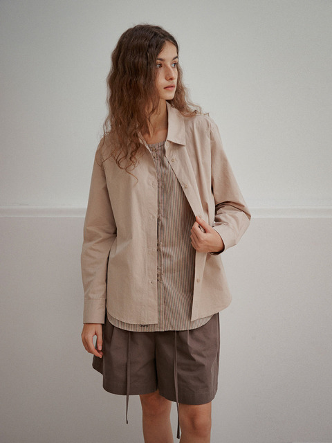 [아우로] 스트라이프 레이어드 셔츠 베이지
