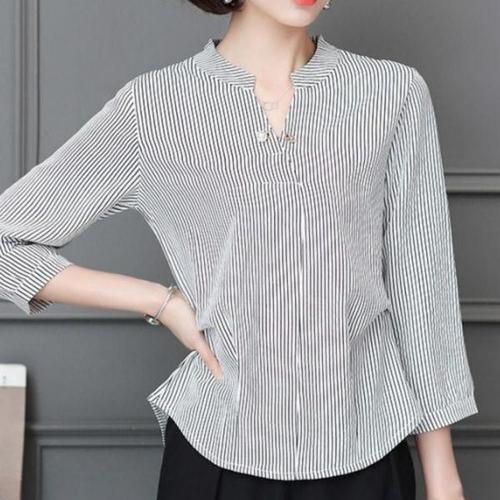 [엄지척]쉬폰 LF26300 얇은 소매 블라우스 줄무늬 셔츠 카라_19651256_667501