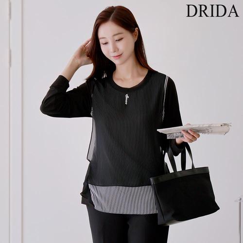 드리다 여성 봄 가을 스트라이프 쉬폰 이중 스판 티 블라우스 40-50대 미시 중년여성 엄마옷 출근