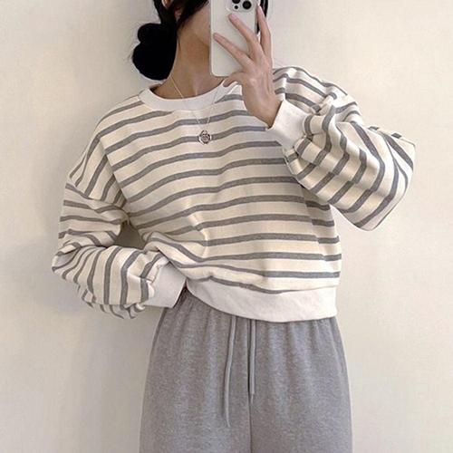 [옷자락] 여자 스트라이프 긴팔카라티 펜던트 코튼 가을 맨투맨