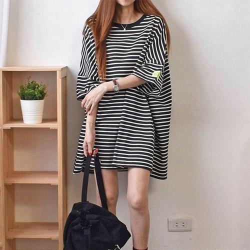 스트라이프 반팔롱티셔츠 롱티셔츠 여자롱티 여성