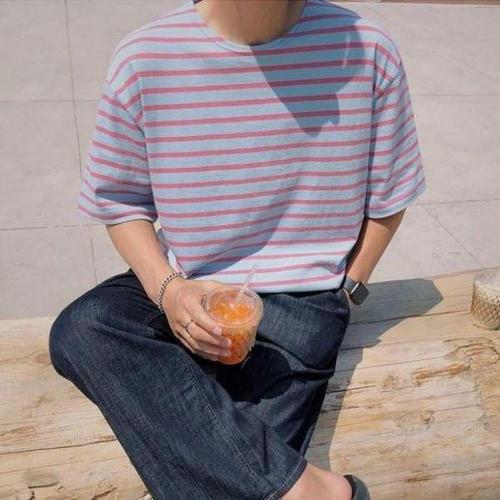 [셀러허브_여성트랜드패션]티셔츠 7부 데일리 라운 남자 보드 핏 순면 남성 스트라이프