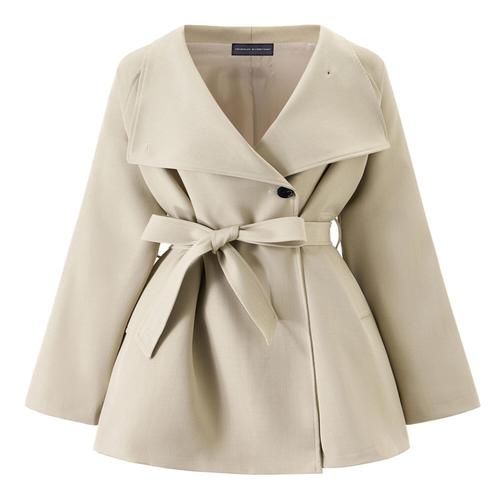 여성 하프 트렌치코트 봄가을 코트 빅사이즈 스트랩 허리 정장 트렌치코트 더블 벨티드 롱 트렌치코트