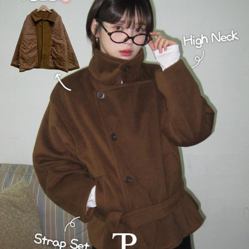 [미니멈에브리데이][미니멈 에브리데이]하이넥 스트랩 가오리 크롭 울 코트 (EA4JH008D)