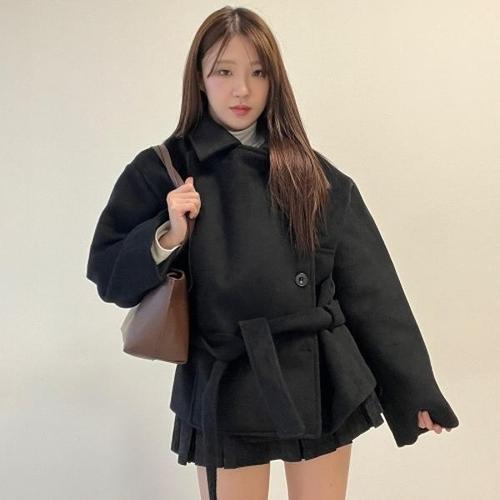 캐시미어 코트 허리끈 스트랩 벨트 블랙 여성 울