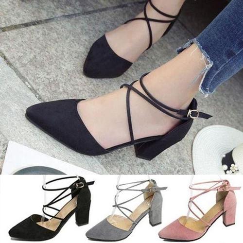 [셀러허브_여성트랜드패션]ONM 스웨이드 스트랩 하이힐 여성 통굽 펌프스힐