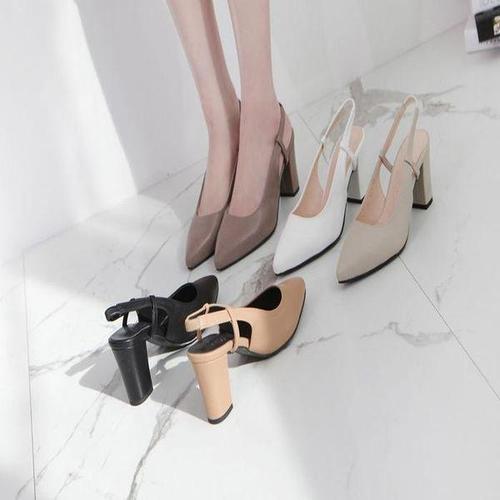 [셀러허브_여성트랜드패션]ONM 키높이 여자 심플 스트랩 슬링백힐 가보시 통굽
