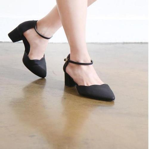 [셀러허브_여성트랜드패션]ONM 키높이 뾰족코 발목 물결라인 미들힐 스트랩 통굽
