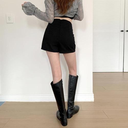 [옷자락]여자 하이웨이스트 옆트임 스판 슬림핏 숏팬츠