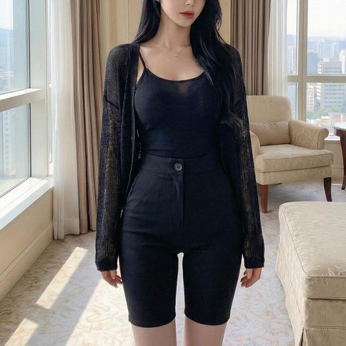 [옷자락] 여자 하이웨이스트 옆트임 스판 슬림핏 숏팬츠