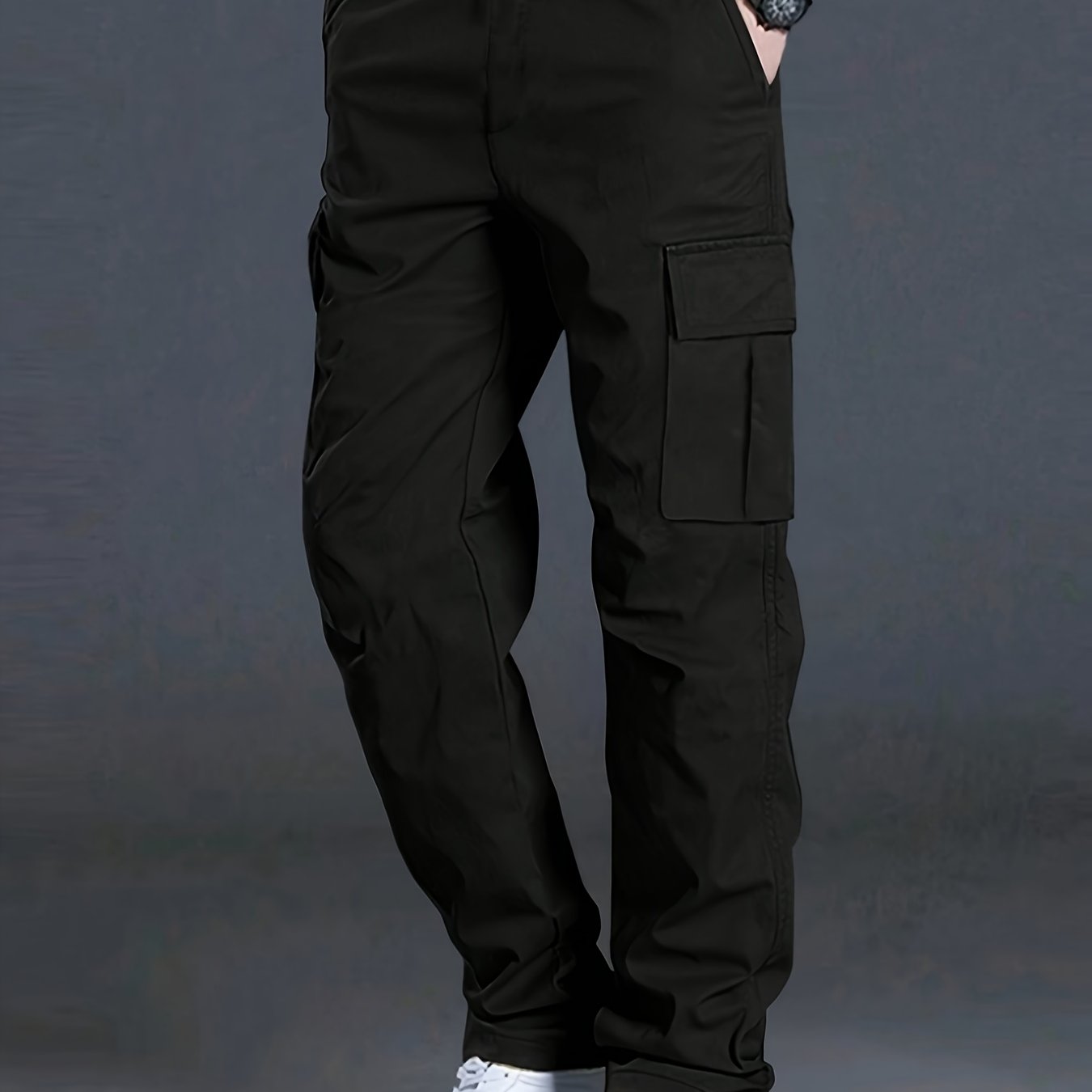 TEMU 남성용 사계절용 바지 - 헤비듀티 레그 카고 트라우저, 포켓, 기계 세탁 가능한 원단, 아웃도어 및 캐주얼 착용 - 솔리드 컬러 작업복 (신축성 없음)